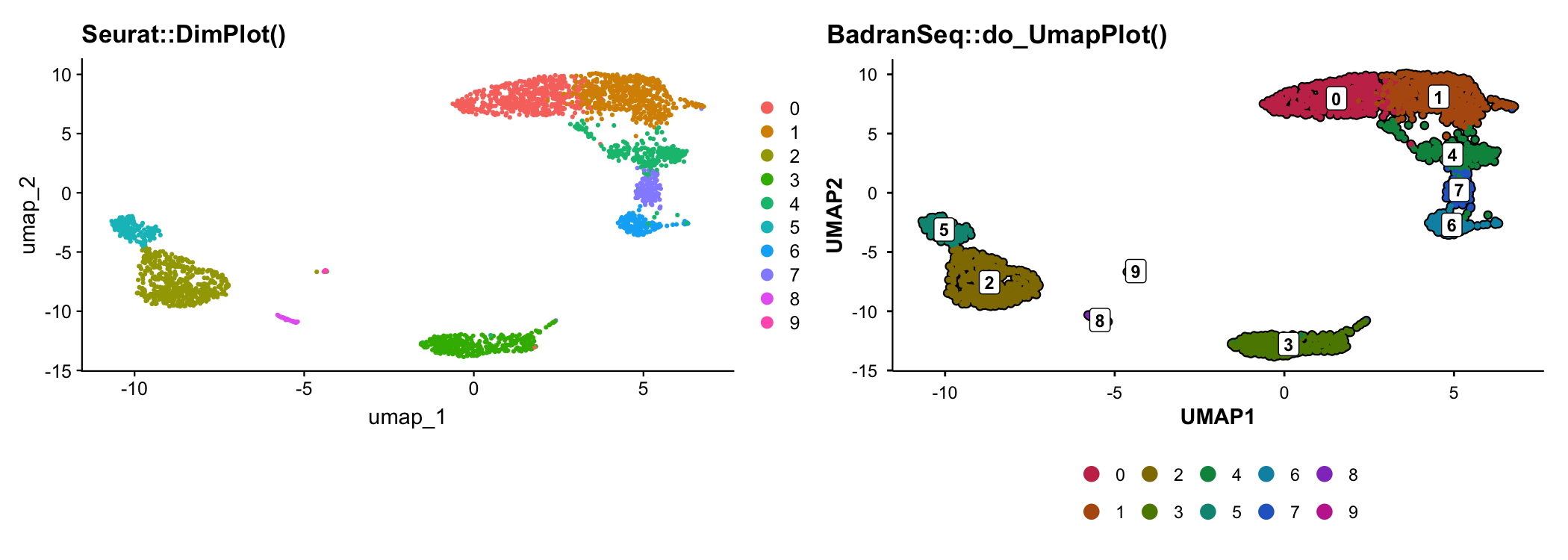 BadranSeq adds cell borders, boxed cluster labels, a vivid colour palette, and a clean theme — all with one function call.
