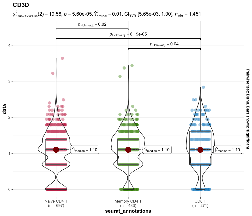 | Statistical violin plots | Not built-in | Kruskal–Wallis + pairwise via ggstatsplot |
