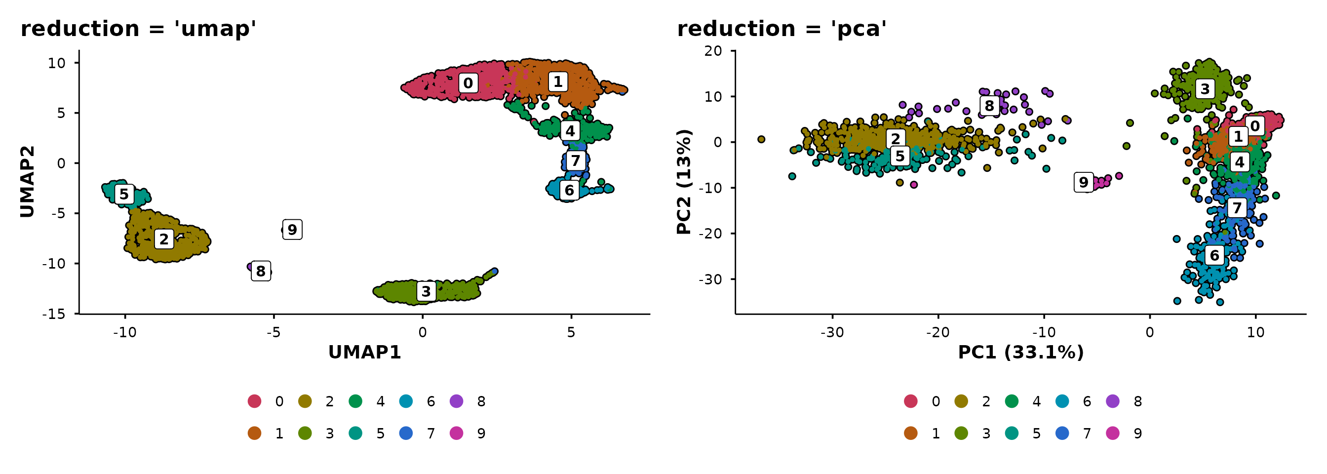 p2 <- do_DimPlot(pbmc3k, reduction = "pca") + ggtitle("reduction = 'pca'")